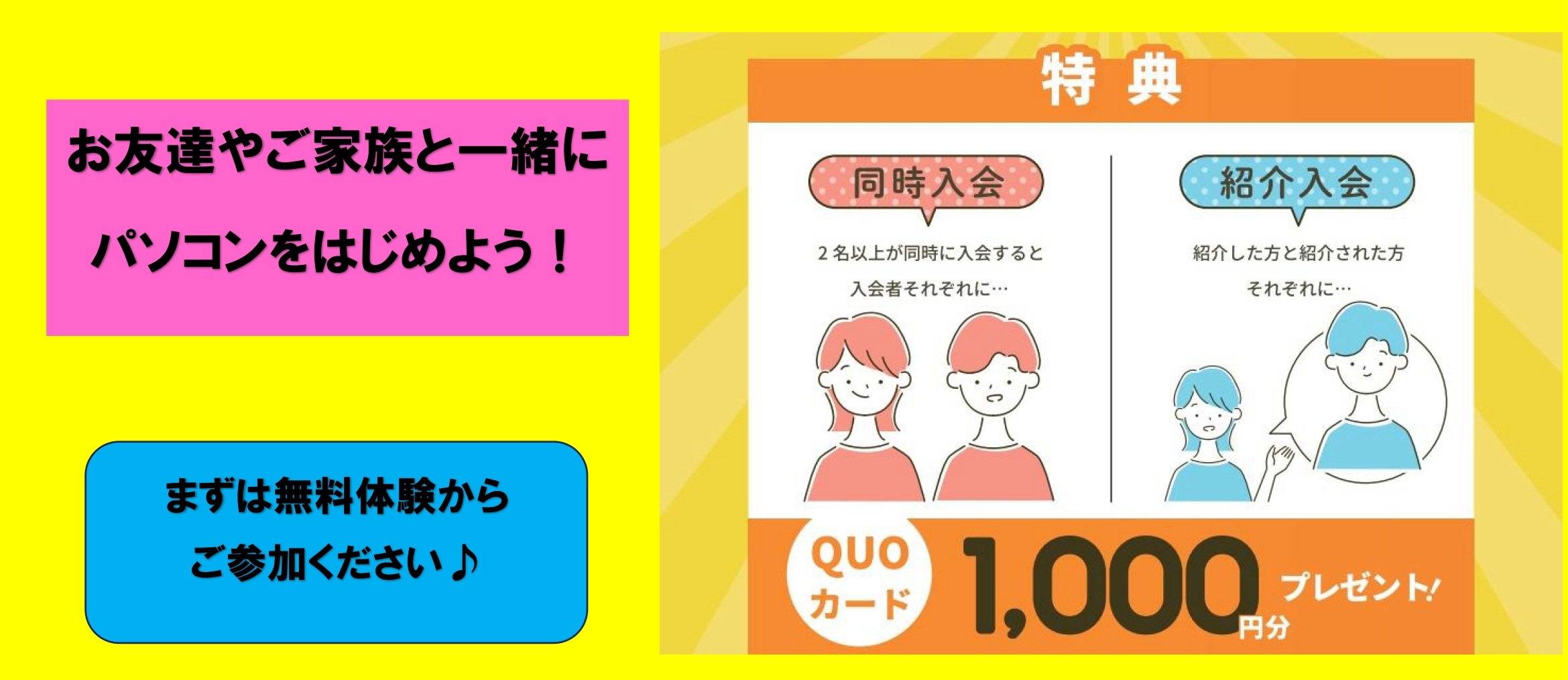 ご自分のペースでお得にしっかり学べるパソコン教室です♪