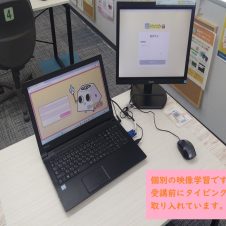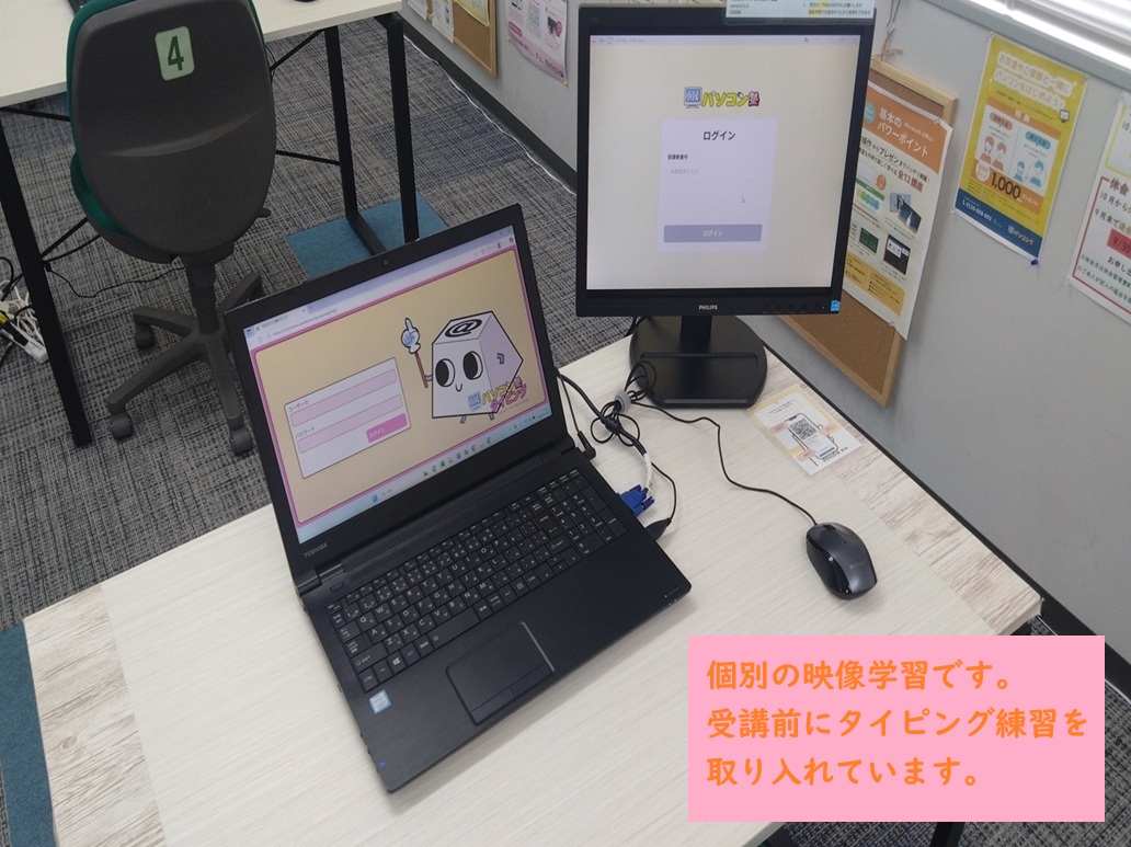 お手本画面の映像を見て、説明を聞きながらパソコンを操作する2画面学習方式。一人ひとりのペースで学べて、わからなかったところは巻き戻して何度でもやり直せるから、確実にレベルアップできます。