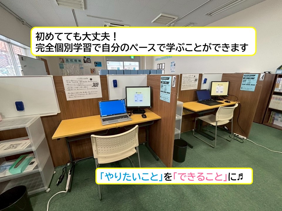 教室に在中する講師が、受講中いつでも質問に対応。カウンセリングで習得度などを一緒に確認するから、無理のないペースで続けられます。