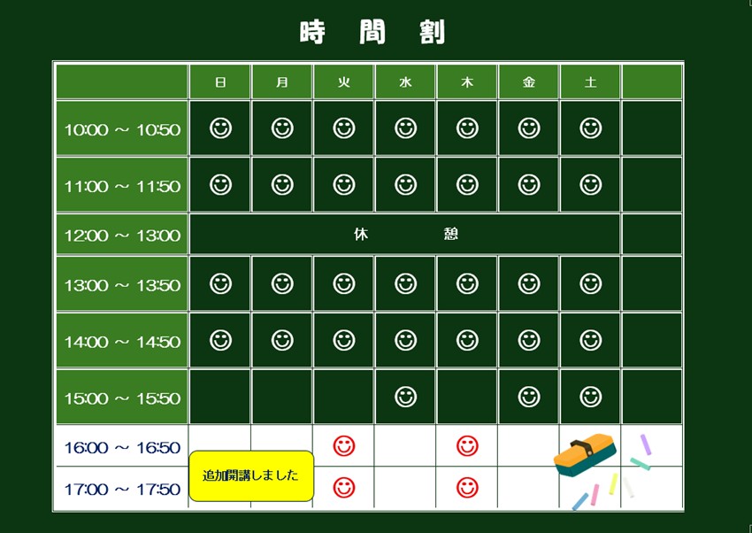 14:00-14:50 | ◯ | ◯ | ◯ | ◯ | ◯ | ◯ | ◯ |