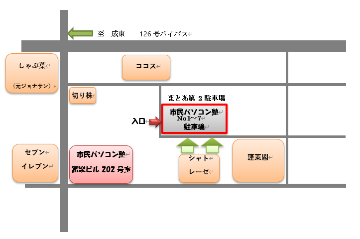駐車場から教室まで1分程度です。