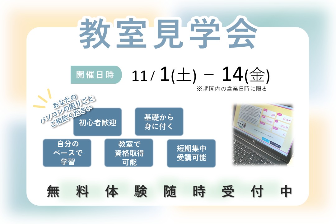 みなさんにパソコンって楽しいと感じてもらえるような教室を目指して頑張ります!