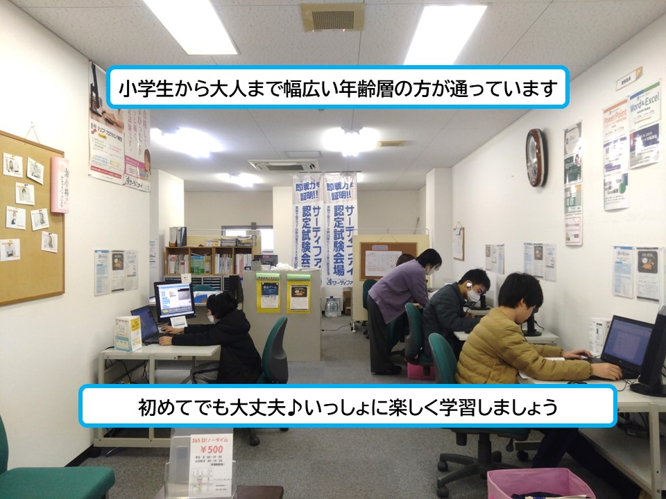 パソコンの購入をきっかけに入会しました。基礎講座から始め、Excel・Wordとやり、時々図形でお絵かきをしたりしています。自営業なので仕事に活かせれたらと思ってましたが、それ以外でも楽しむことが出来てます。