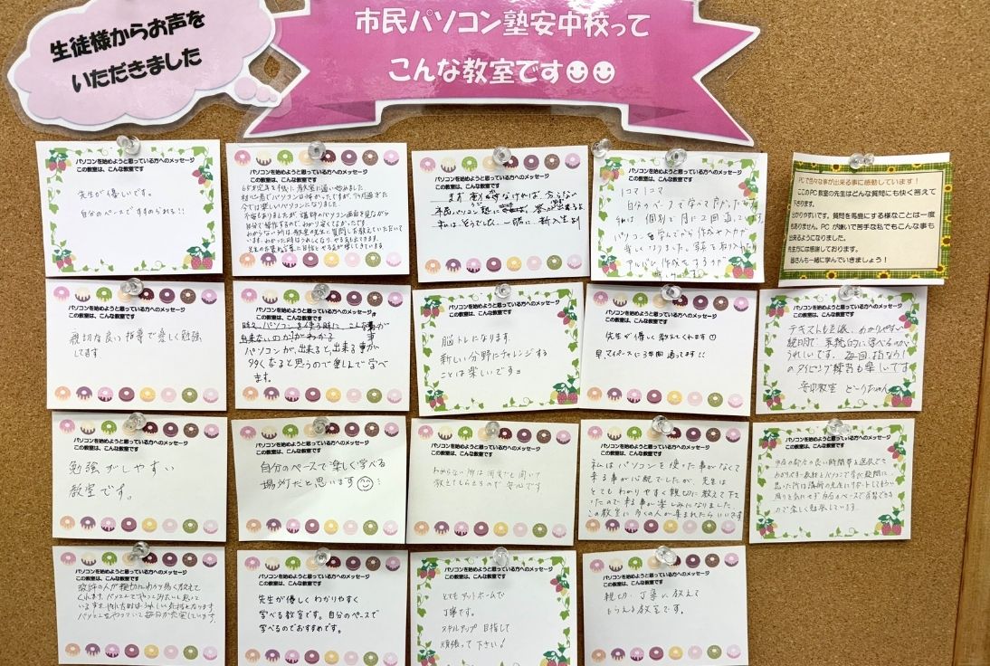 『パソコン教室。先生はとても優しくて楽しいです。』