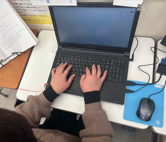 このパソコン教室に来て、色々なことを学べました。前までタイピングは全然早くなくて遅かったけど、今はけっこう速度が速くなってて、ここに来て良かったなと思います。