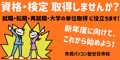 就職・転職・再就職・大学の単位取得にも役立ちます! 新年度に向けて、これから始めませんか? MOS対策講座、サーティファイビジネス検定講座が人気です😊 まずはお気軽にご相談にお越しください♪