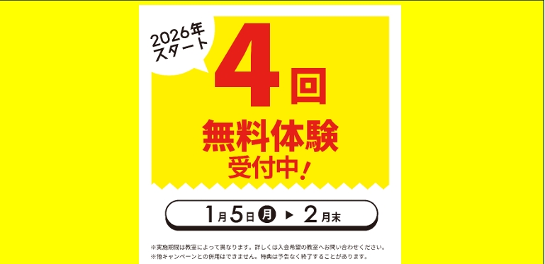 期間限定で無料体験が4回できるキャンペーンを実施中です! パソコンのスキルをアップさせるチャンス! オトクなキャンペーンは2月末までです! お急ぎください!!