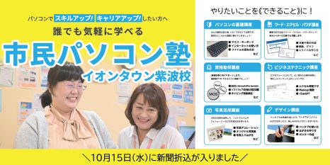 パソコンを楽しく習いに通っています。いつも笑顔の先生を見に来るのが楽しみです。