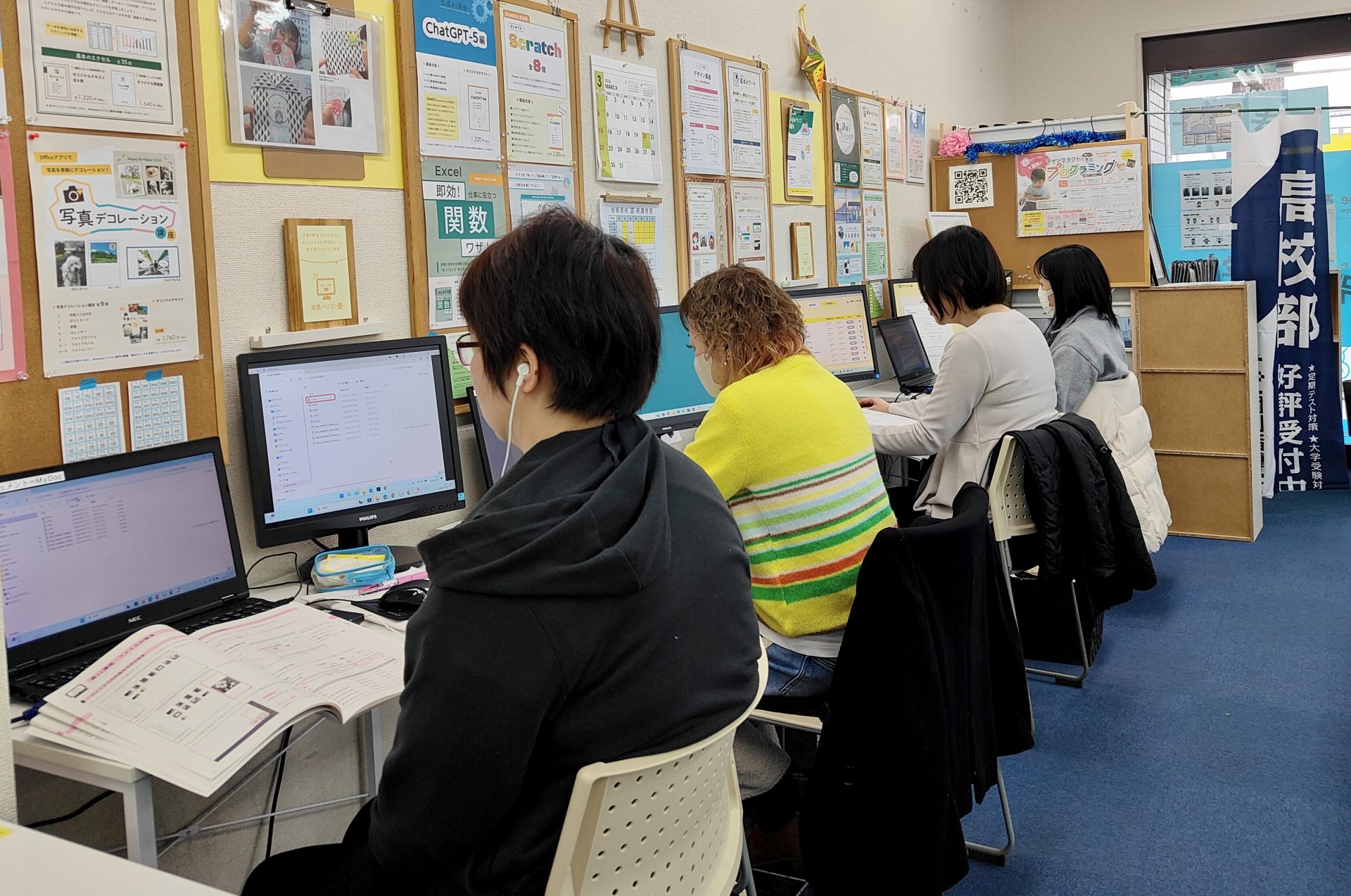 ◎ 相模原校にはパソコン初心者の方から、キッズ、スキルアップ目指す方、資格取得の方など、それぞれの目標に向かって学習されています。