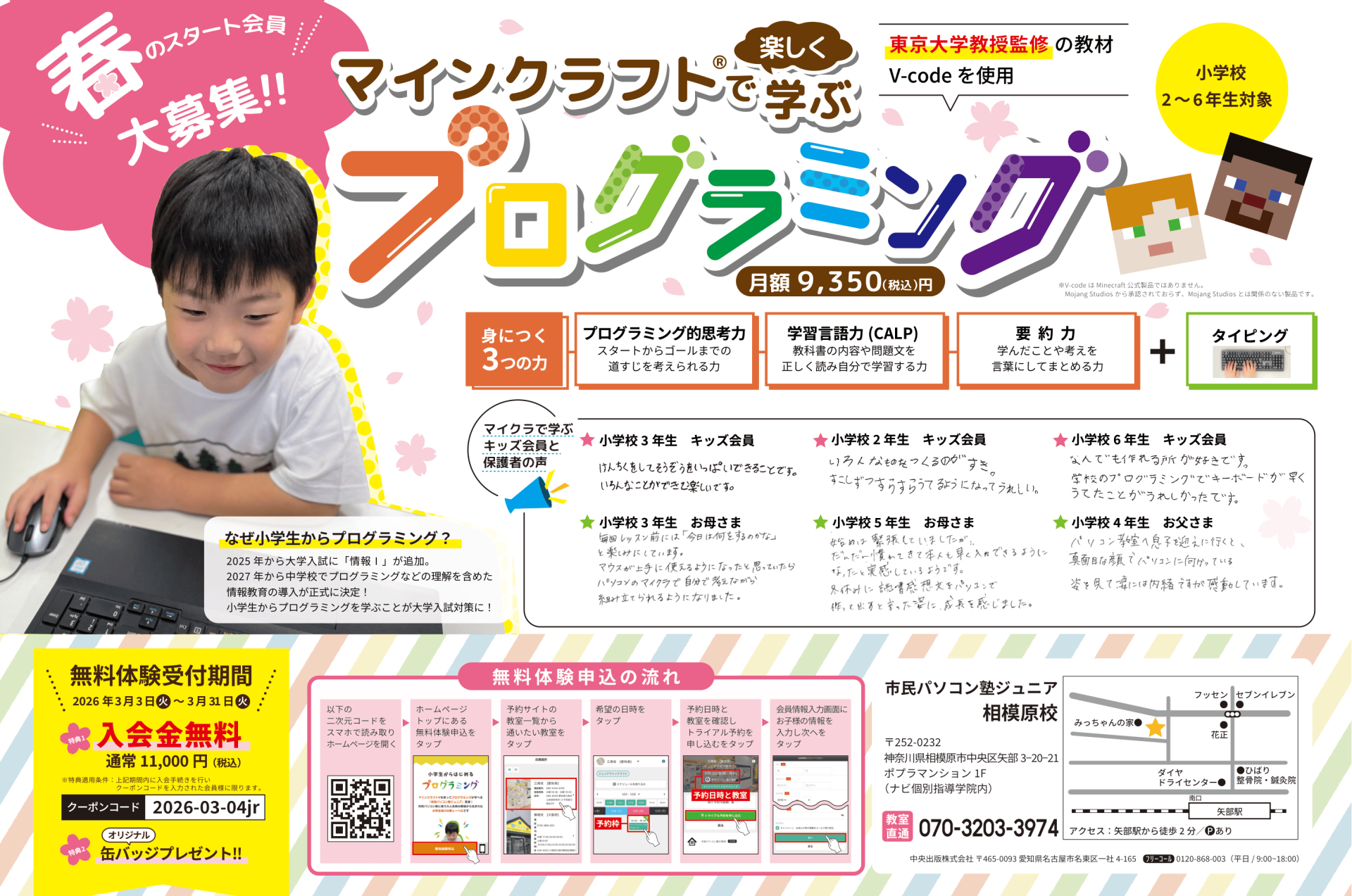 現在は、相模原・淵野辺・矢部・橋本・町田・京王相模原線沿線や横浜線沿線などから多く通っていただいています。