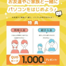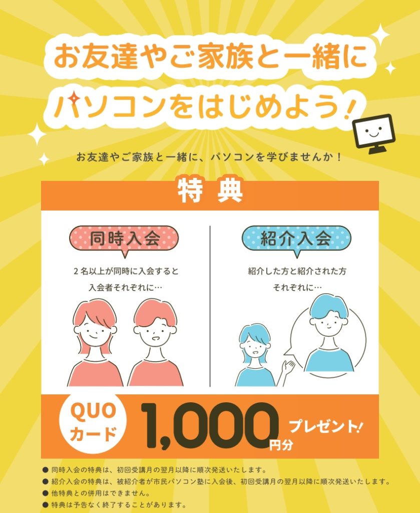 同時入会ですと、QUOカード1,000円分プレゼント!