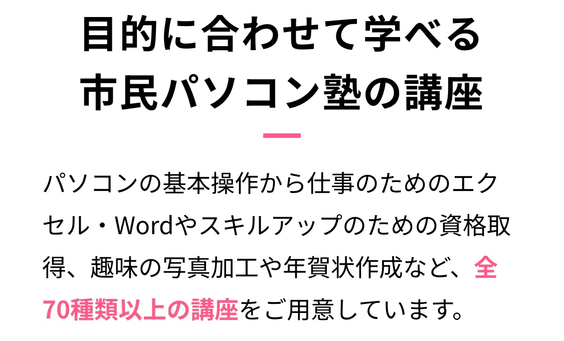 初心者の方からスキルアップを目指す方まで一人ひとりの目的に合わせた