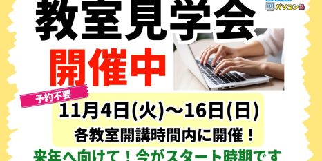 今月も恒例の見学会を開催いたします。各教室の営業曜日時間の中で好きなタイミングでお越しいただけます☆彡お席に空きがあればその場で体験もしていただけますので是非ご来校ください!また、毎回大好評のものづくり大作戦の申込受付中です。お子さんの冬休みの思い出づくりにいかがでしょうか。みんな大好きマイクラやしゃかしゃかキーホルダー作りなど楽しい内容盛りだくさんです。