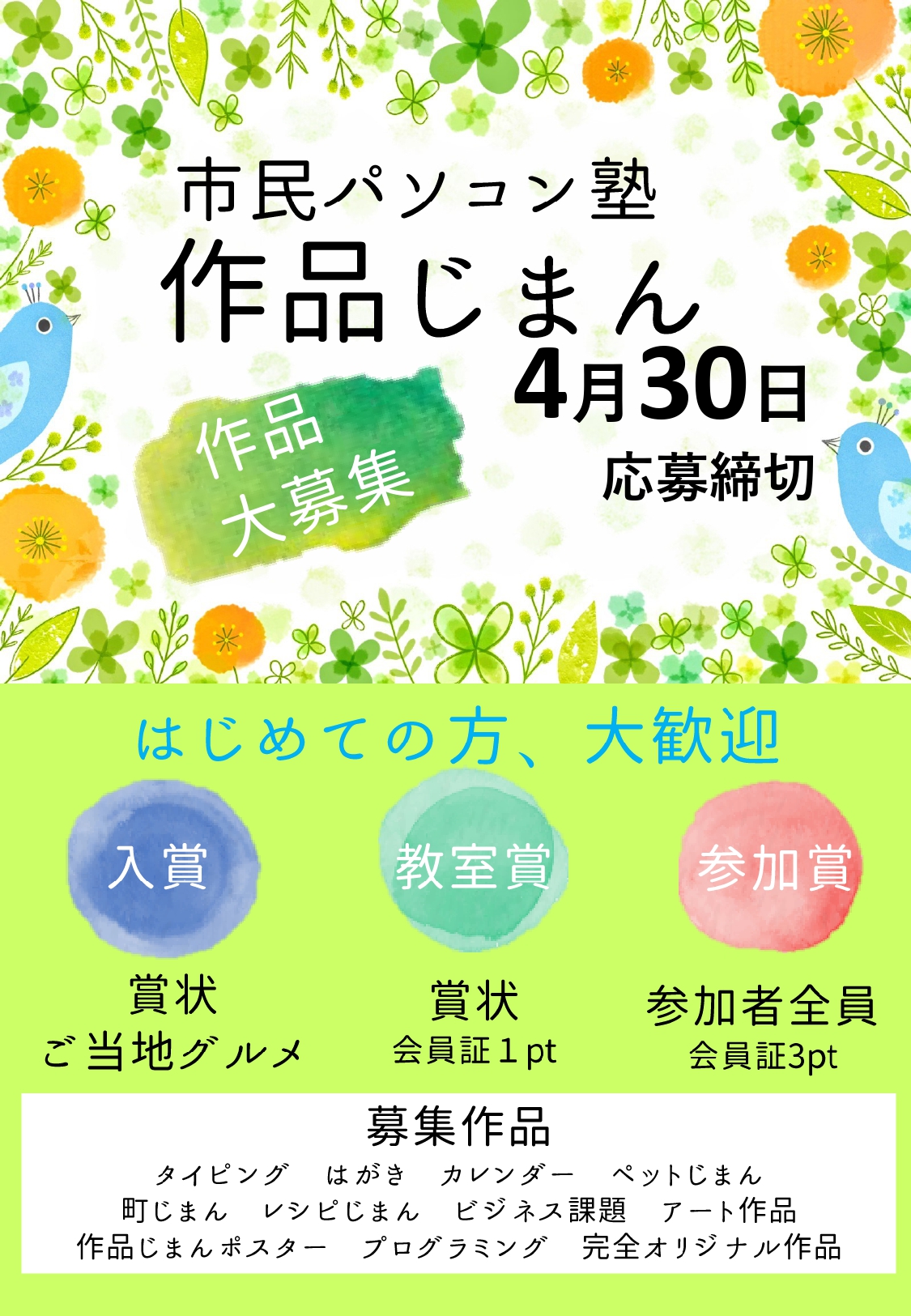 今回は作品じまんのポスターも募集しておりますので、