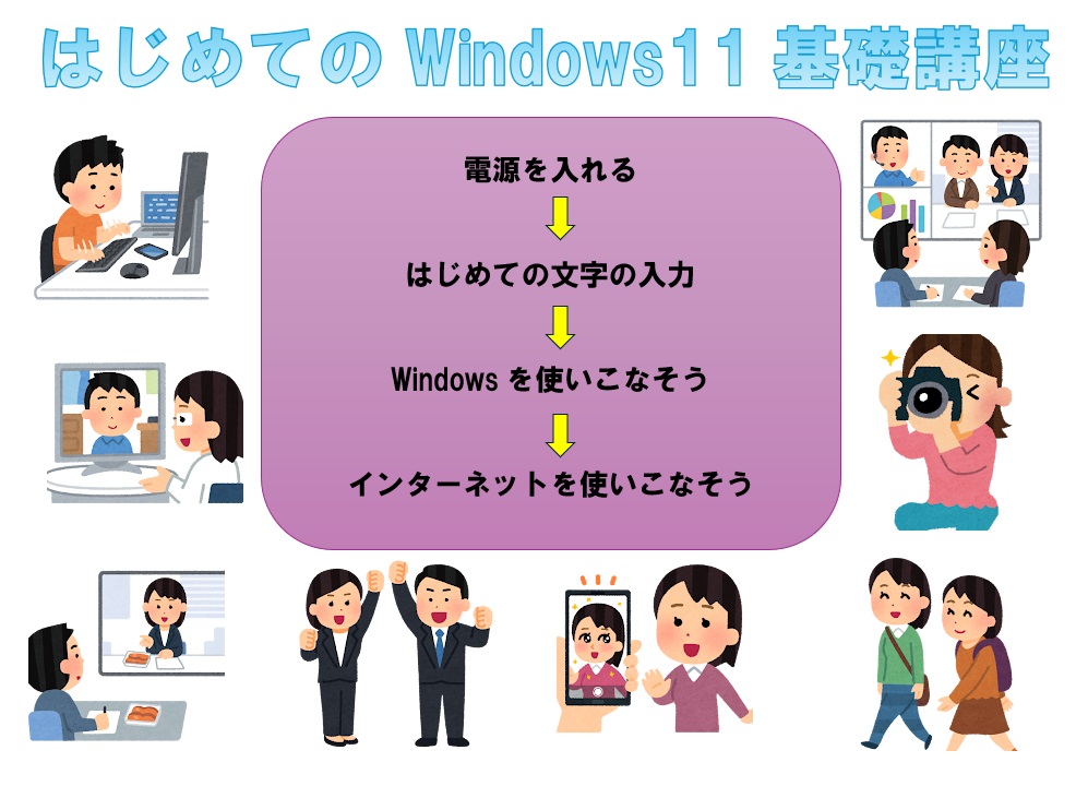 マウスの操作や文章入力など、パソコン操作の「キホンのキ」がしっかり身につきます。