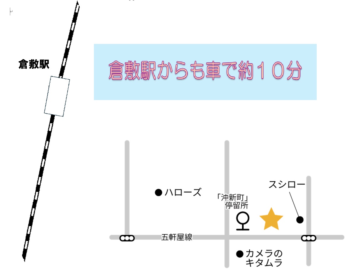 JR倉敷駅から自転車で約15分(2.6km)