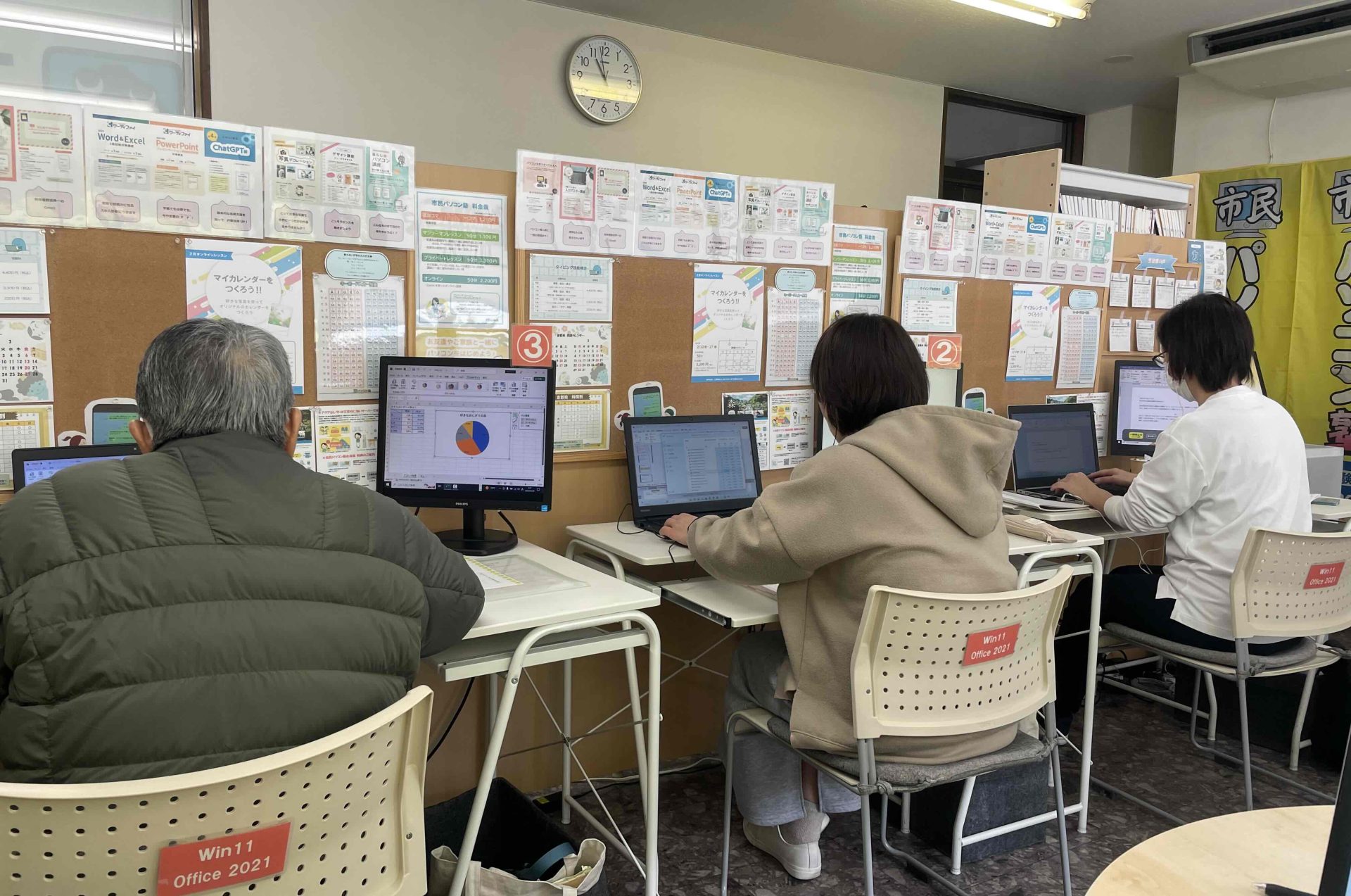 少人数制なので、落ち着いた環境で安心して学べる教室です。パソコンに触れる時間が、毎日のちょっとした楽しみになるようお手伝いできたらと思います。