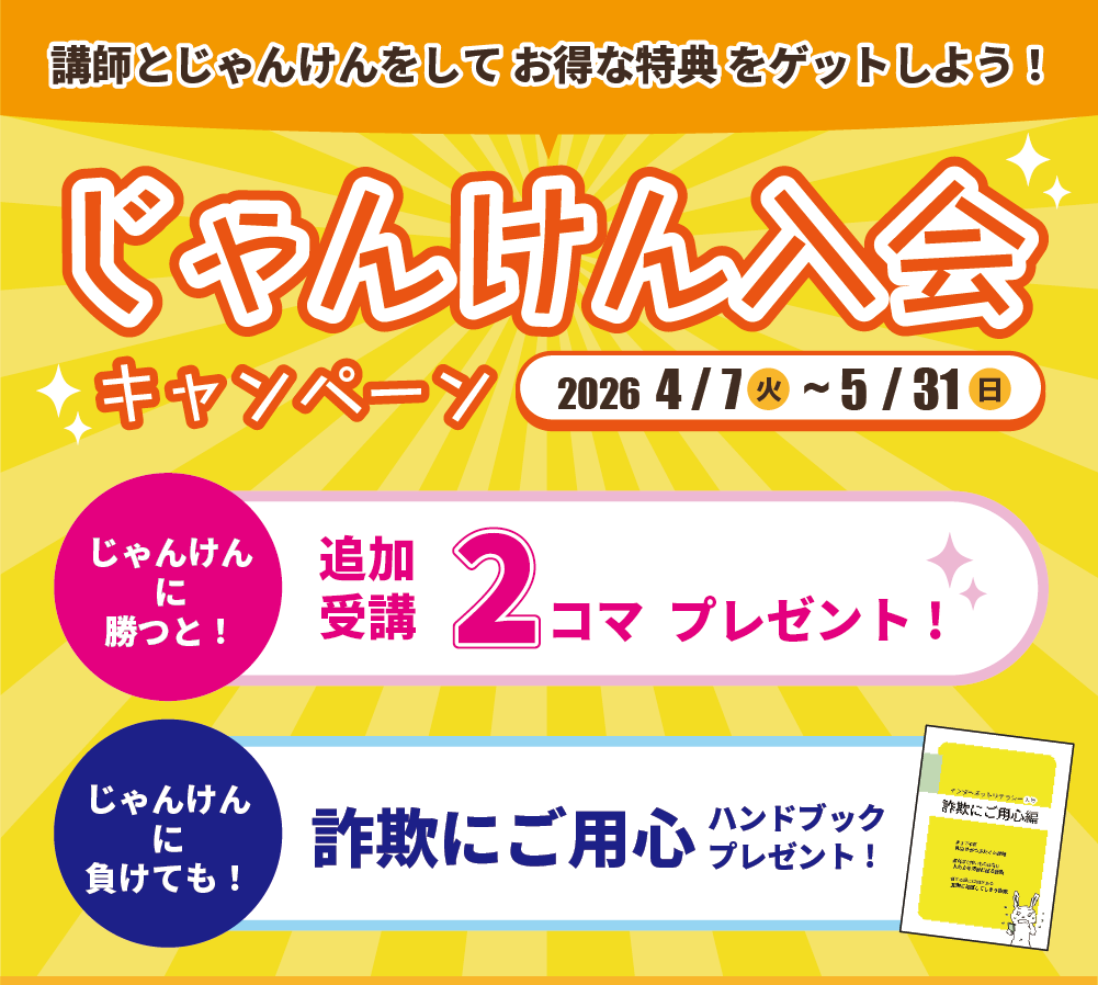 無料体験時に講師にじゃんけんで勝てば追加受講2コマプレゼント✨