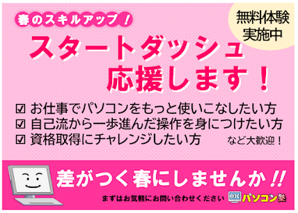 事務処理を効率的に進めたく、スキルアップのために通い始めました。もっと早く知りたかった!という機能をたくさん学べますよ♬